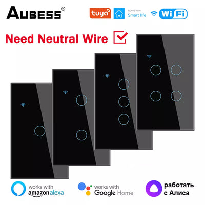 Aubess WiFi US Smart Switch Need Neutral Wire 1/2/3/4 Gang Light Switch Tuya Smart Life APP Control Support Alexa Google Home